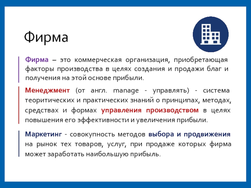 Маркетинг - совокупность методов выбора и продвижения на рынок тех товаров, услуг, при продаже которых фирма может заработать наибольшую прибыль.