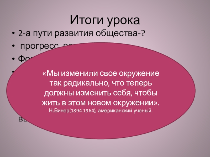 «Мы изменили свое окружение так радикально, что теперь должны изменить себя, чтобы жить в этом новом окружении».