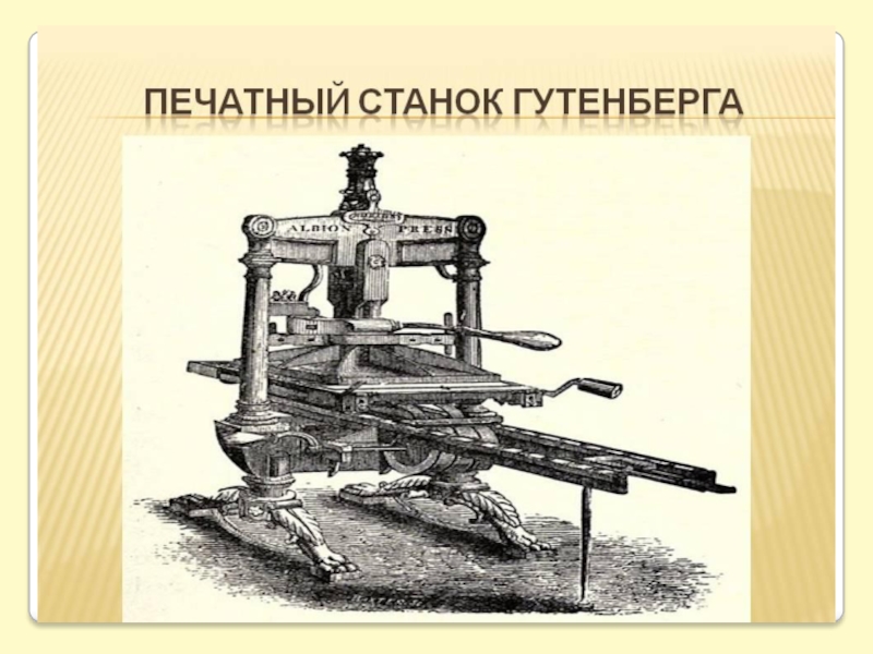 Слайд 9В 1450 г. Гуттенберг создал первый в мире печатный станок. Это