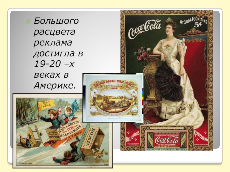 Слайд 14Большого расцвета реклама достигла в 19-20 –х веках в Америке.