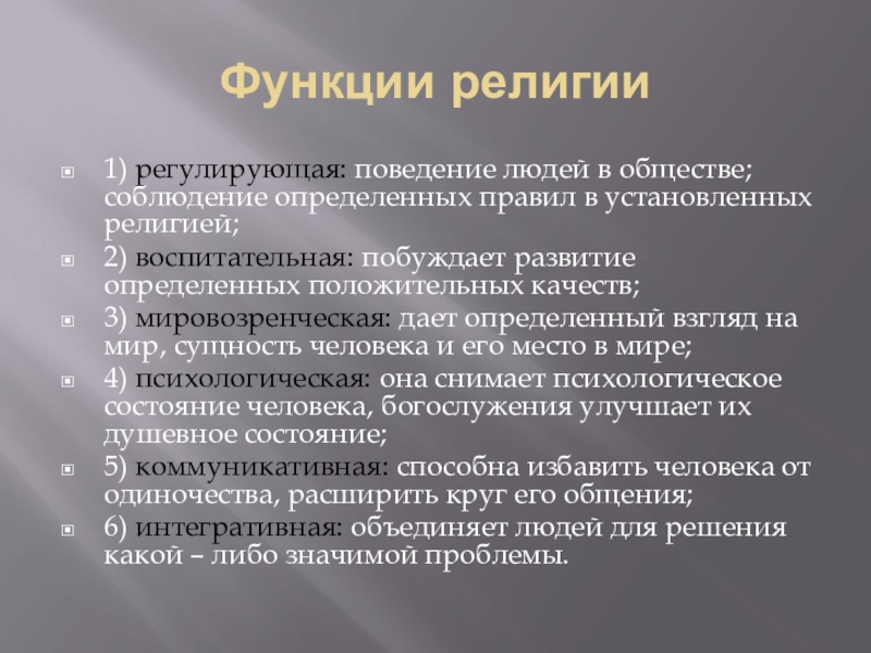 Значение слово «религия»: 1) от латинского relegere – относиться с особым почтением;