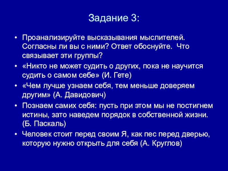 Компоненты образа «Я»: познавательный (самосознание, знание себя), эмоционально-оценочный (ценностное отношение к себе), поведенческий (особенности регуляции собственного поведения