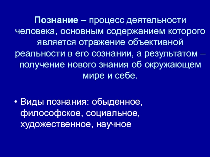 Виды познания: обыденное, философское, социальное, художественное, научное