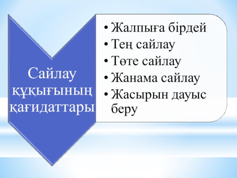 Слайд 1Сайлау және сайлану құқығы ҚР азаматының ең басты саяси құқығы (ҚР