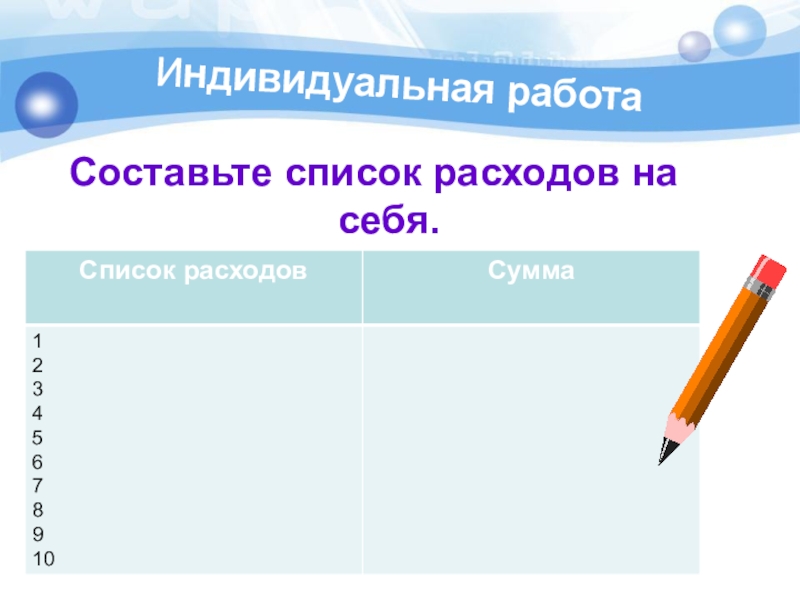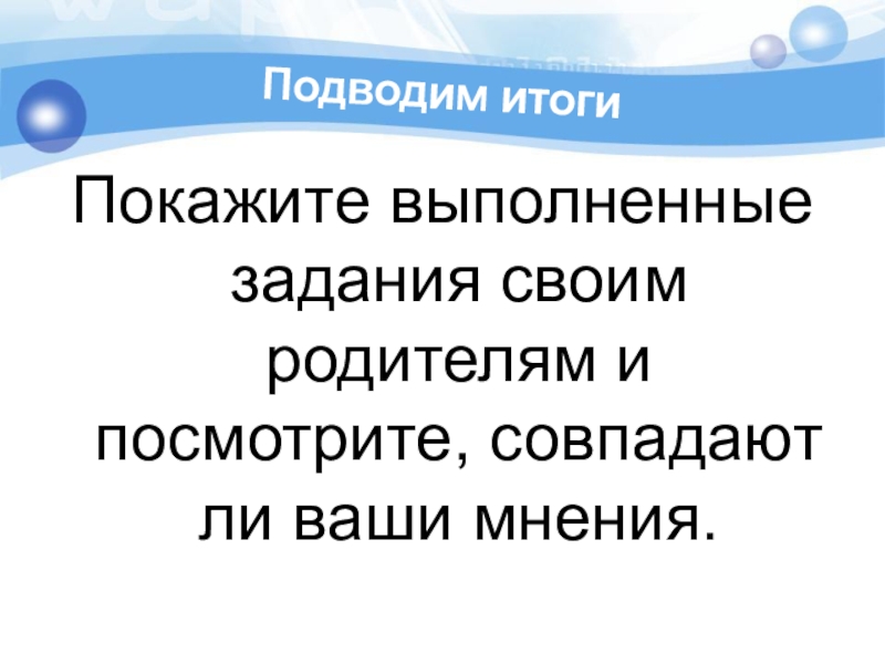 Это сайт презентаций, где можно хранить и обмениваться своими презентациями, докладами, проектами, шаблонами в формате PowerPoint с другими пользователями. Мы помогаем школьникам, студентам, учителям, преподавателям хранить и обмениваться учебными материалами.
