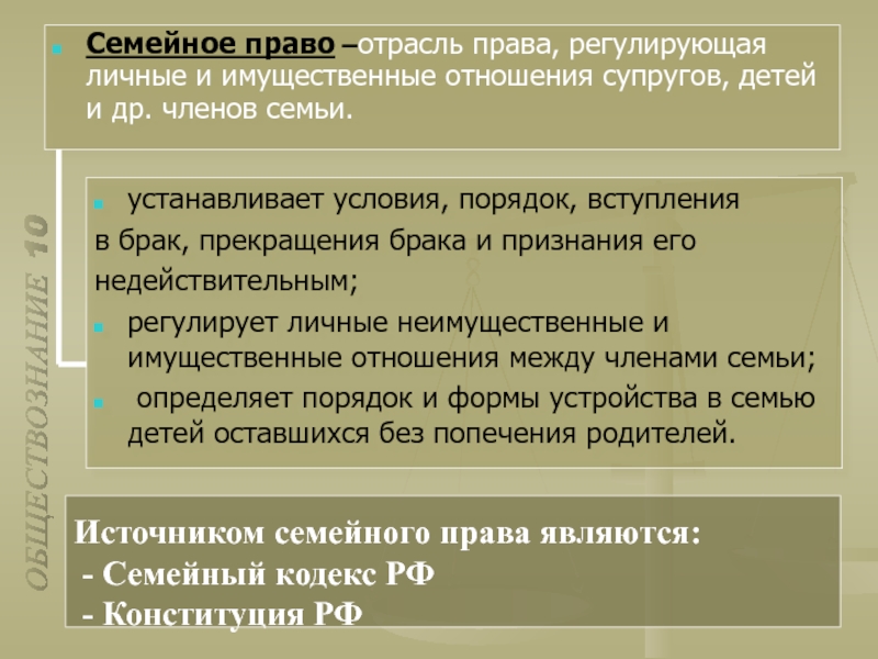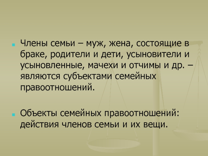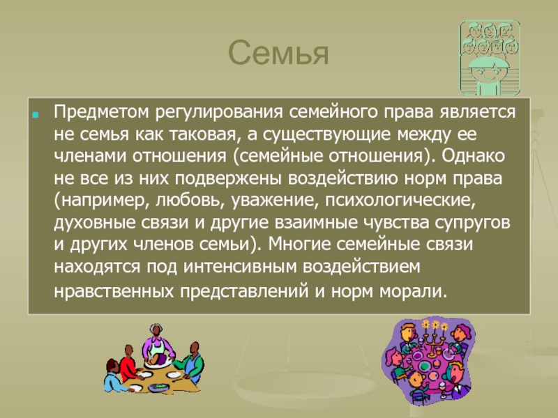 регулирует личные неимущественные и имущественные отношения между членами семьи;