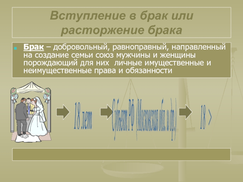 в брак, прекращения брака и признания его
