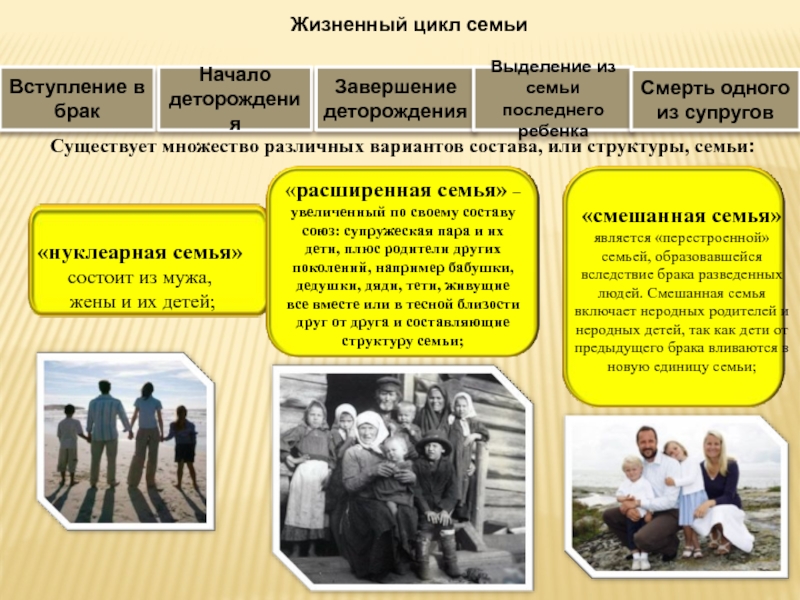 Существует множество различных вариантов состава, или структуры, семьи: