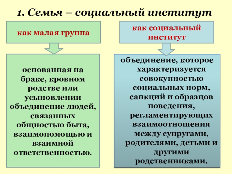 основанная на браке, кровном родстве или усыновлении объединение людей, связанных общностью быта, взаимопомощью и взаимной ответственностью.