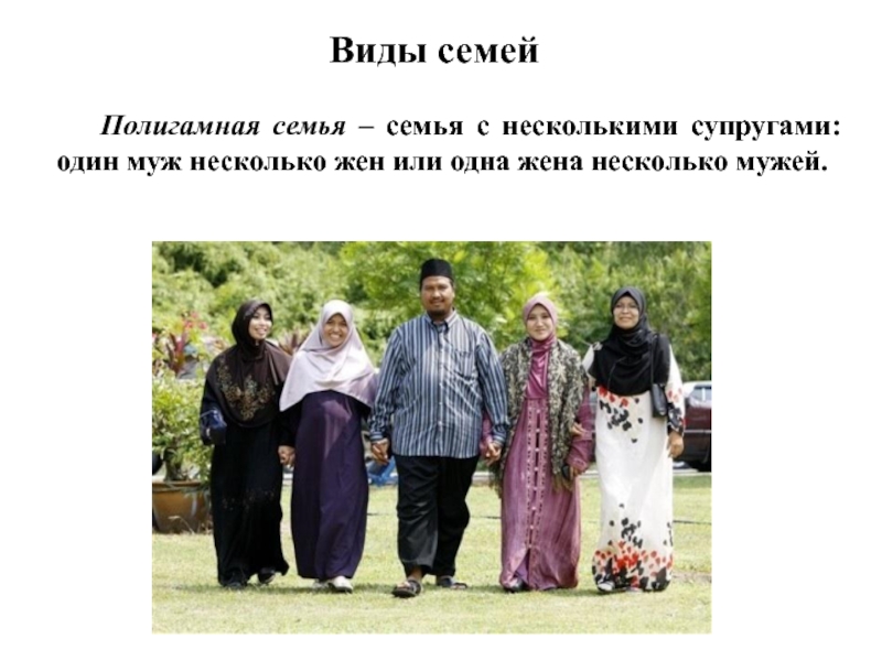 Полигамная семья – семья с несколькими супругами: один муж несколько