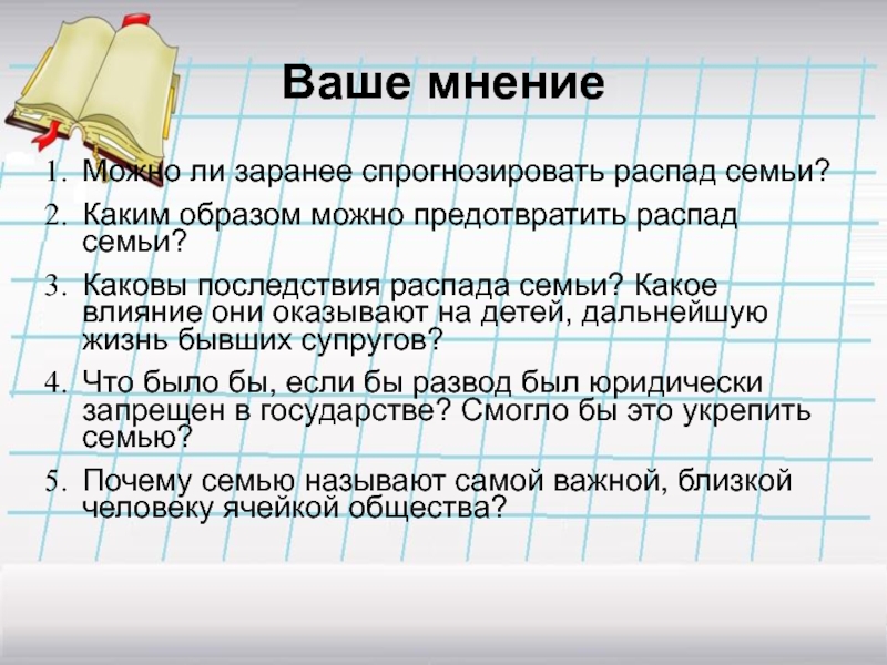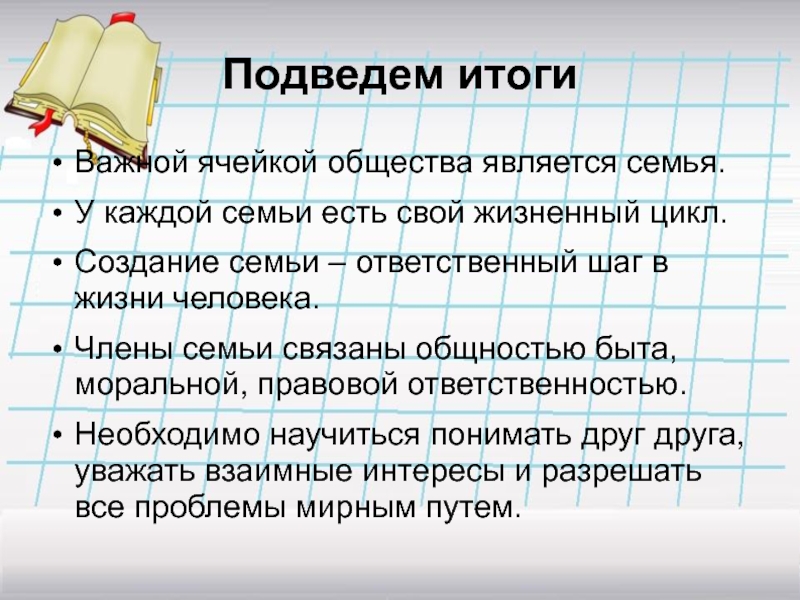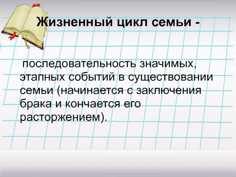 Все дети уходят из семьи, появляются внуки. Заканчивается, когда внуки взрослеют.