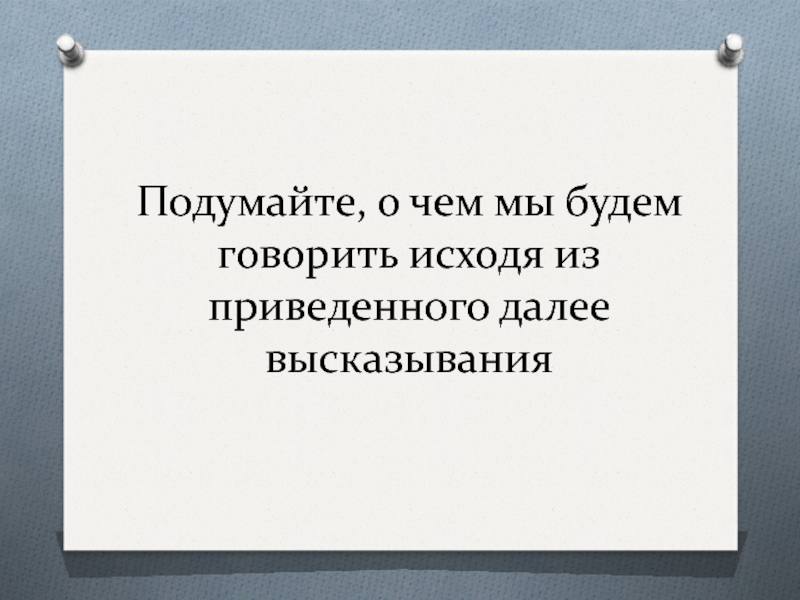 Слайд 1Подумайте, о чем мы будем говорить исходя из приведенного далее высказывания