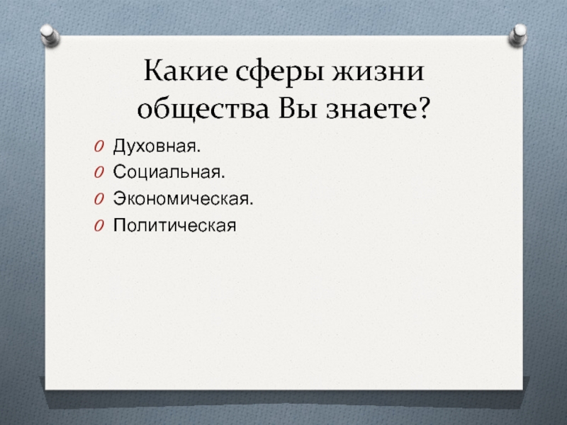 Слайд 4Какие сферы жизни общества Вы знаете?