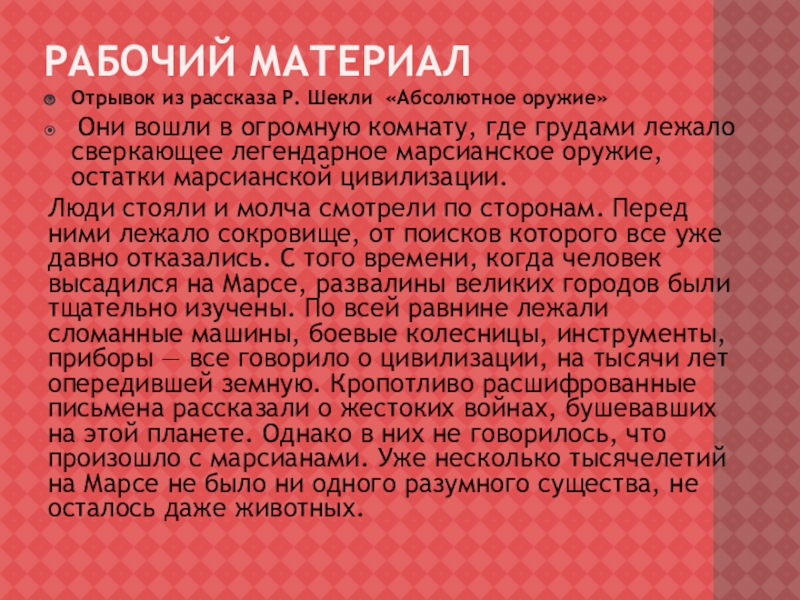 Отрывок из рассказа Р. Шекли «Абсолютное оружие»