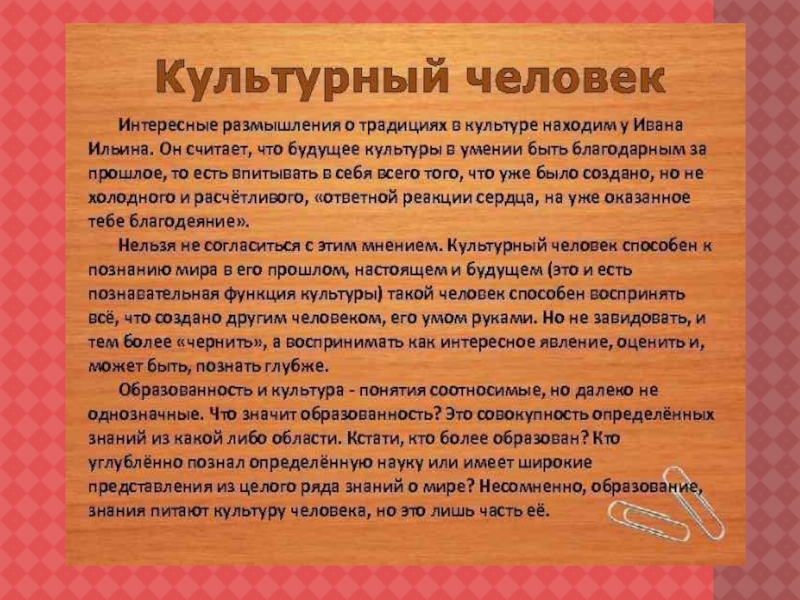 «Культура есть практическая реализация общечеловеческих и духовных ценностей»[2]