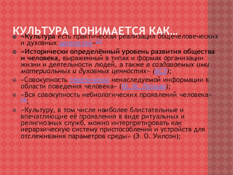 «Совокупность генетически ненаследуемой информации в области поведения человека» (Ю. М. Лотман);