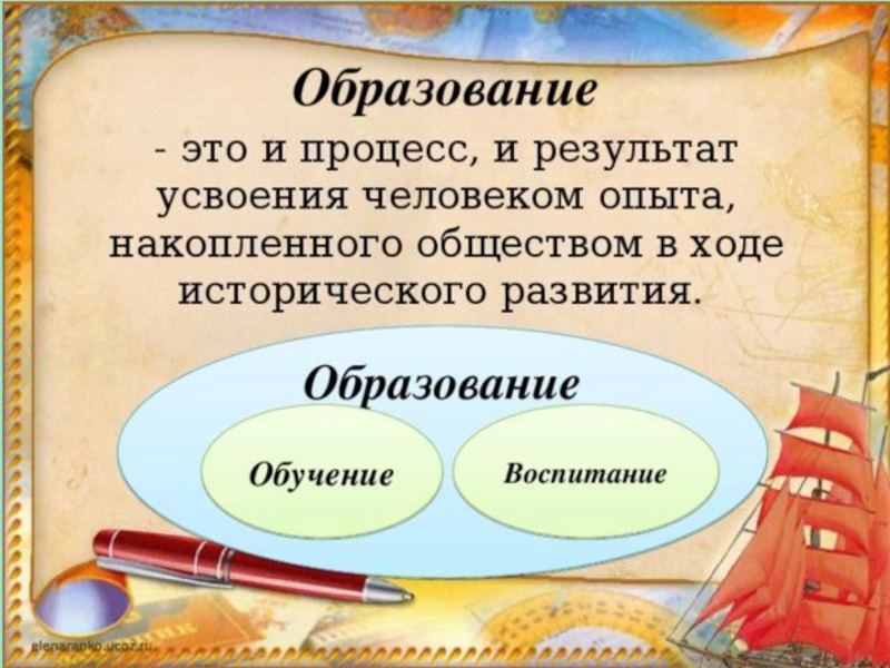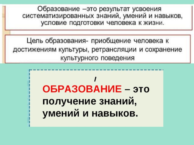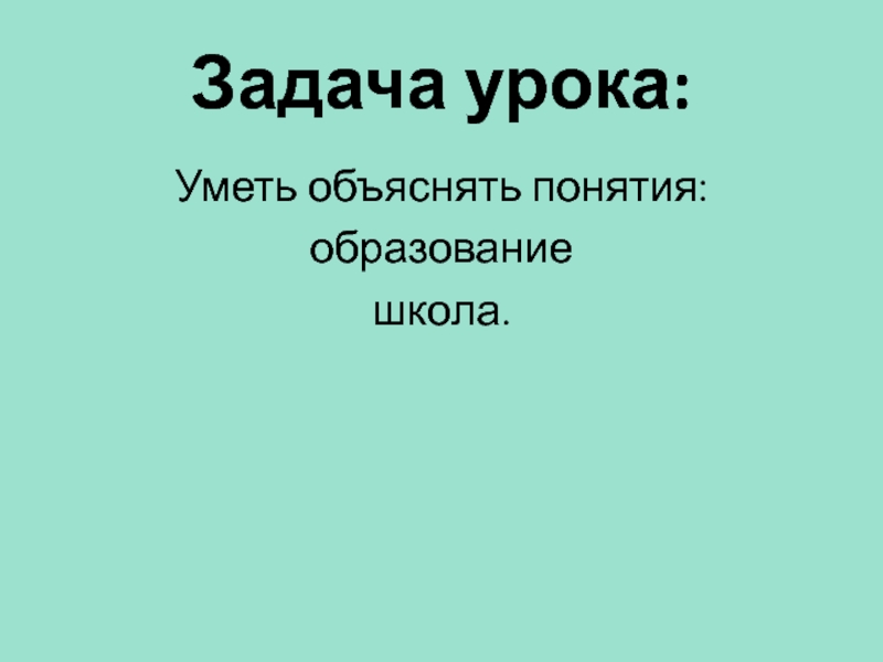 Уметь объяснять понятия:образованиешкола.Задача урока: