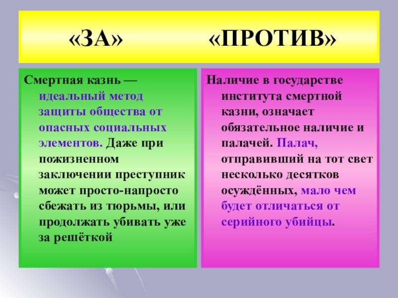 Подлинное назначение наказание — это стремление к исправлению. Для этого существуют различные виды судебного наказания: заключение в тюрьму, исправительные работы и так далее. Смертная казнь никак не ведёт к исправлению.