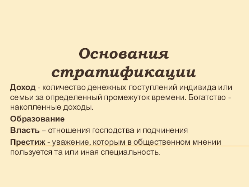 СОЦИАЛЬНАЯ СТРАТИФИКАЦИЯ - ДЕЛЕНИЕ ОБЩЕСТВА НА СТРАТЫ В ИЕРАРХИЧЕСКОМ ПОРЯДКЕ.
