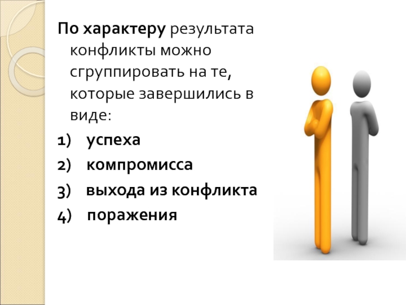 Слайд 23По характеру результата конфликты можно сгруппировать на те, которые завершились в
