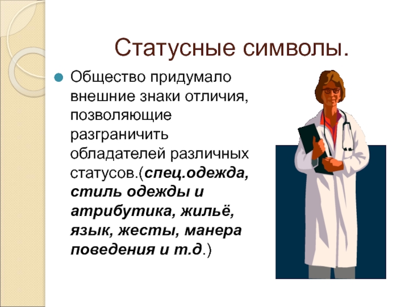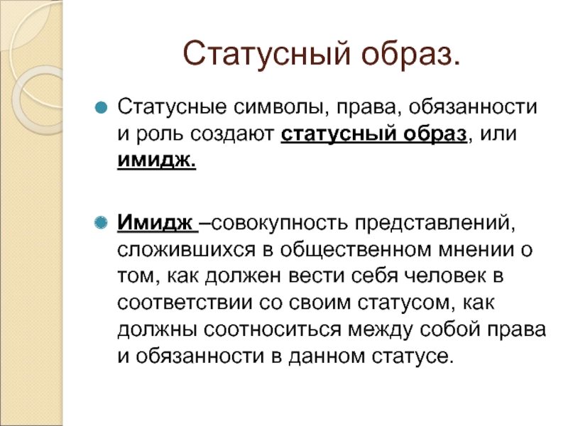 Статусные символы, права, обязанности и роль создают статусный образ, или