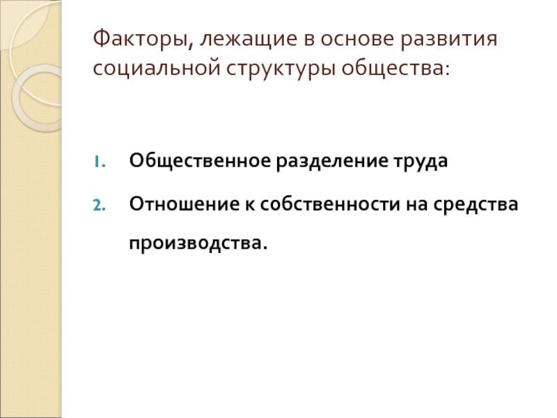 Слайд 4Факторы, лежащие в основе развития социальной структуры общества: