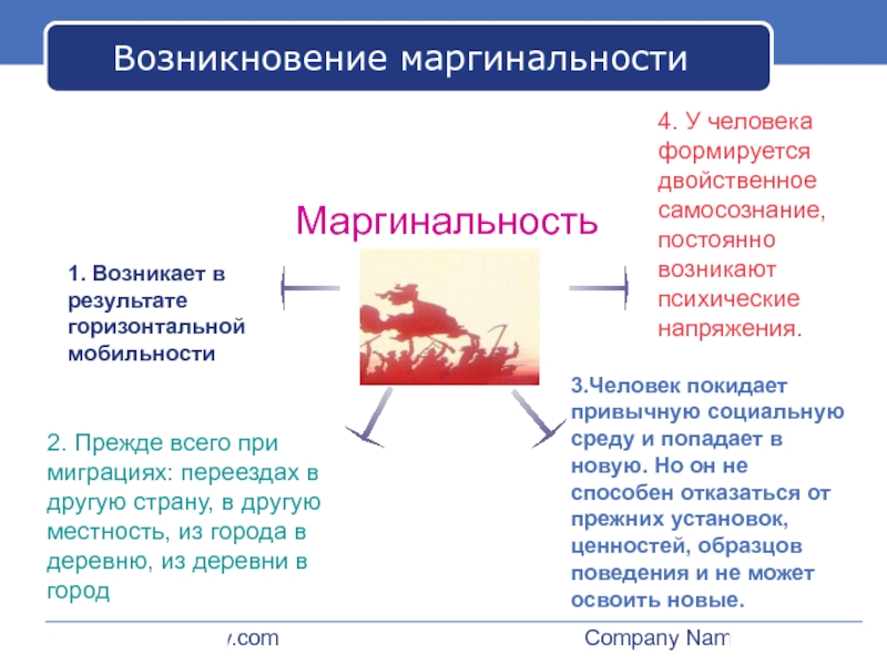 3.Человек покидает привычную социальную среду и попадает в новую. Но он не способен отказаться от прежних установок, ценностей, образцов поведения и не может освоить новые.