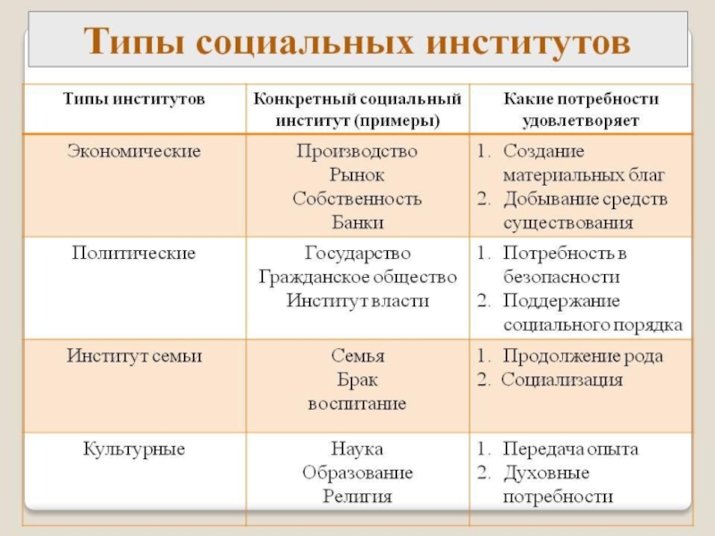 Презентация по обществознанию на тему Социальные институты (10 класс) Обществознание