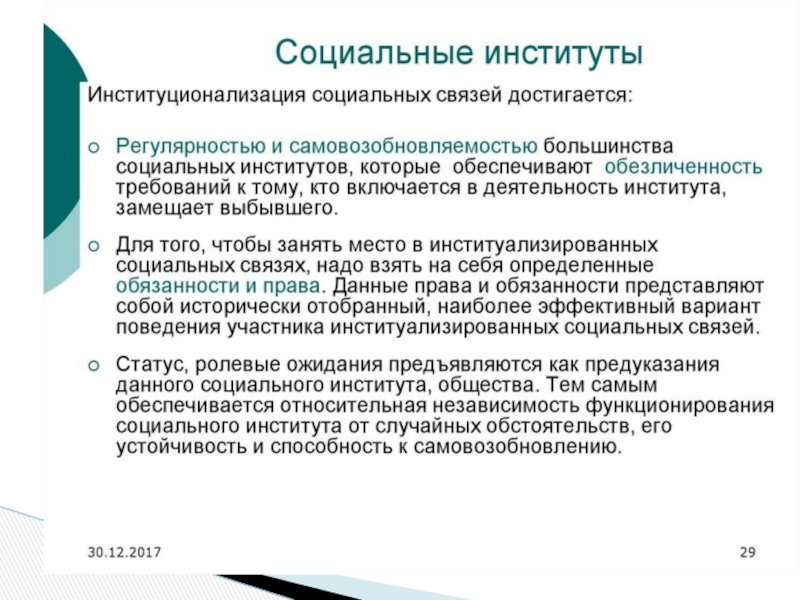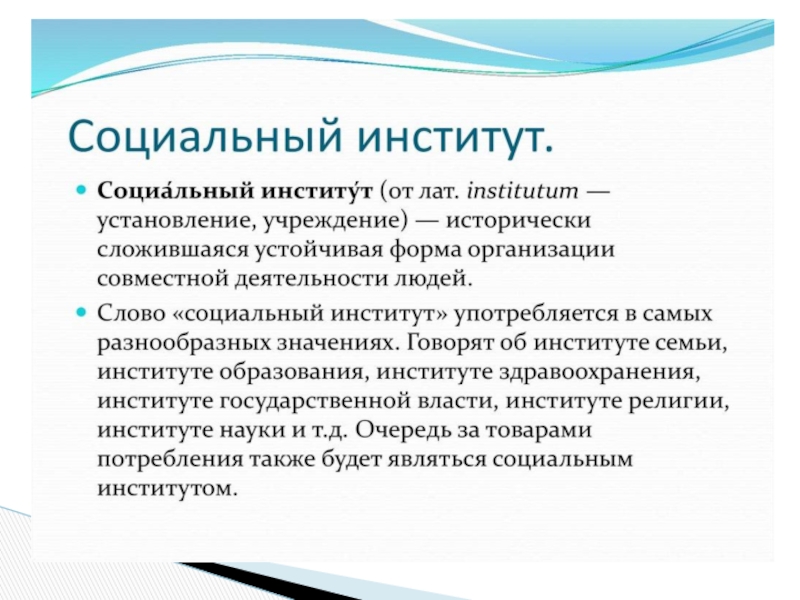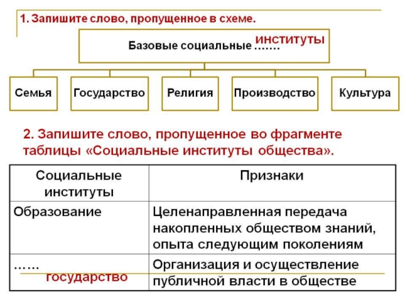 Презентация, доклад по обществознанию на тему Социальные институты (10 класс)