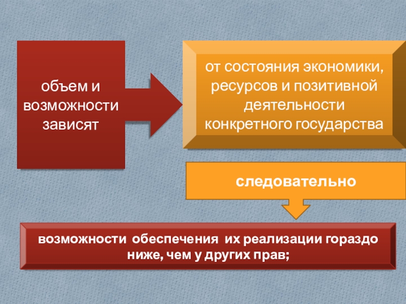возможности обеспечения их реализации гораздо ниже, чем у других прав;