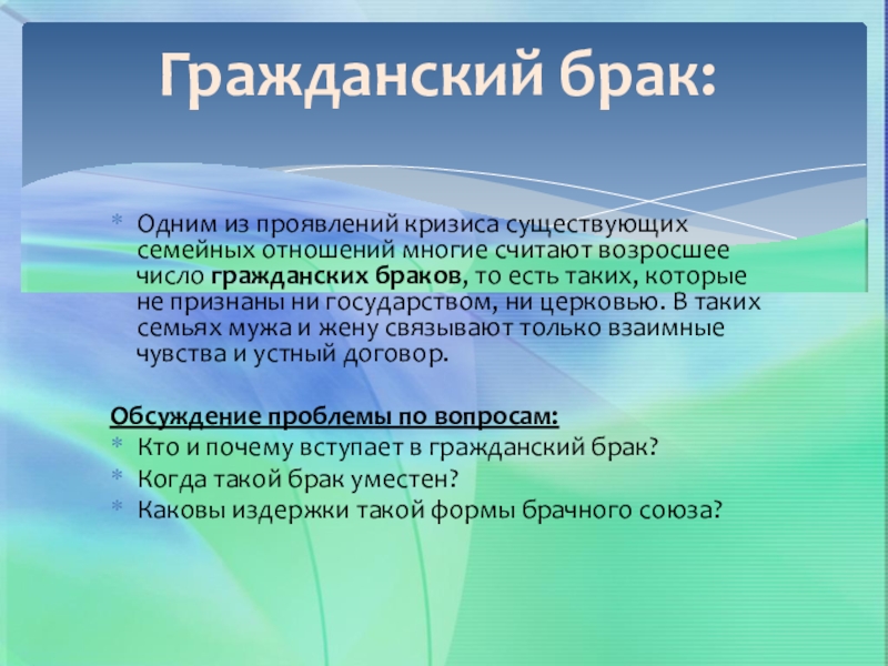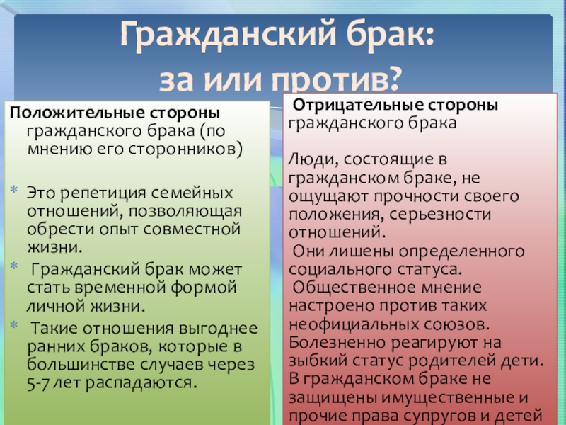 Многообразие правовых отношений рождает только официально оформленный, зарегистрированный брак