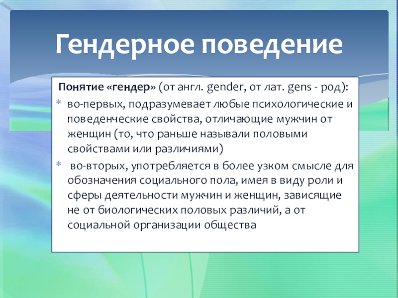 Понятие «гендер» (от англ. gender, от лат. gens -