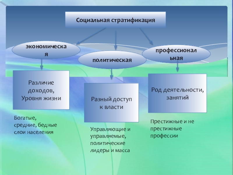 которых различаются между собой неравным объемом власти и материального богатства , прав и обязанностей, привилегий и престижа