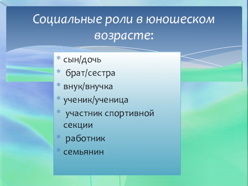 Освоение новых социальных ролей (работник, студент, гражданин, семьянин), связанных с изменением статуса.