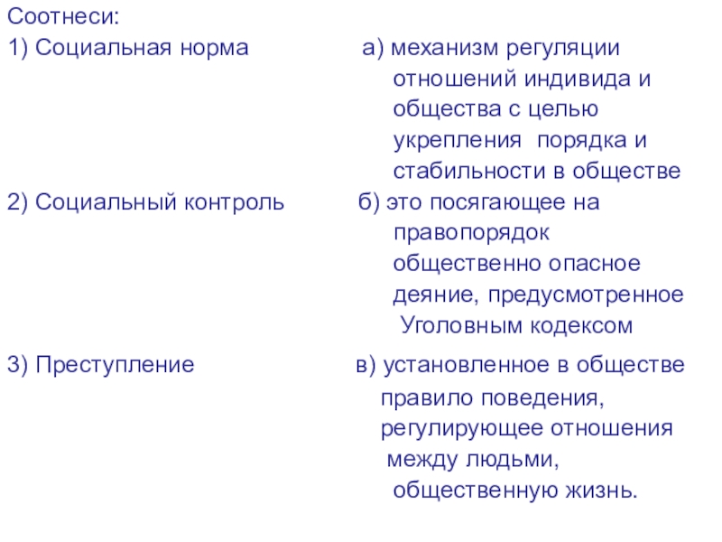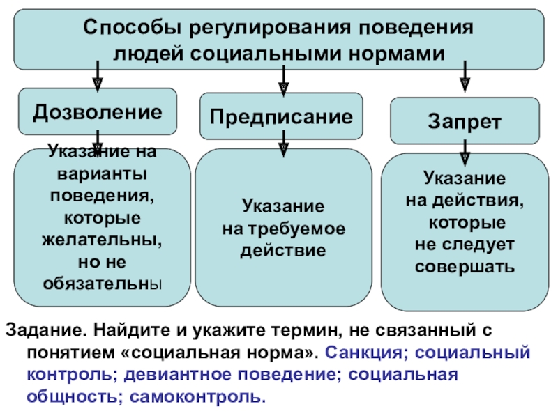 Задание. Найдите и укажите термин, не связанный с понятием «социальная норма». Санкция; социальный контроль; девиантное поведение; социальная общность; самоконтроль.