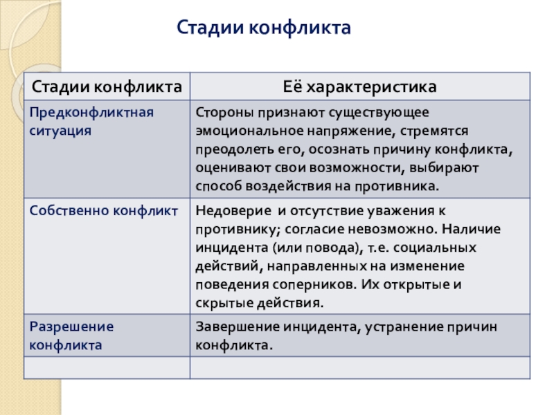По мере развития конфликта возрастает степень развития напряженности инцидента;