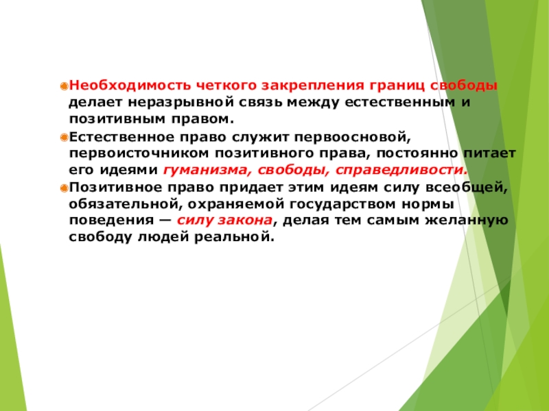 Слайд 19Необходимость четкого закрепления границ свободы делает неразрывной связь между естественным и
