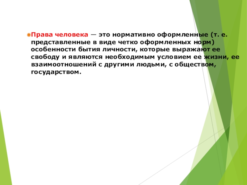 Слайд 14Права человека — это нормативно оформленные (т. е. представленные в виде