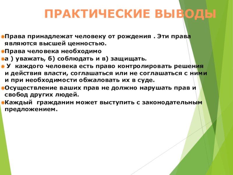 Права принадлежат человеку от рождения . Эти права являются высшей