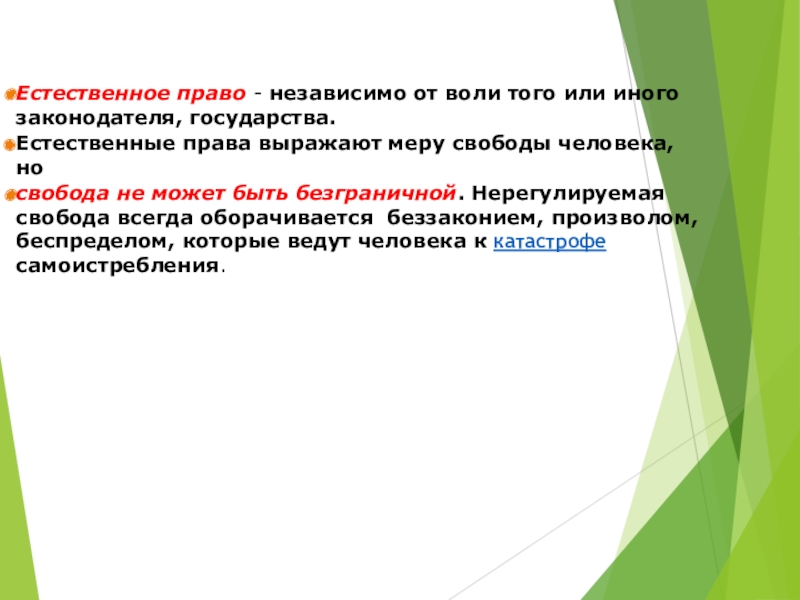 Слайд 11Естественное право - независимо от воли того или иного законодателя, государства.