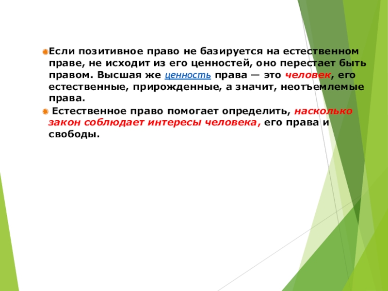 его ценностей, оно перестает быть правом. Высшая же ценность права — это человек, его естественные, прирожденные, а значит, неотъемлемые права.