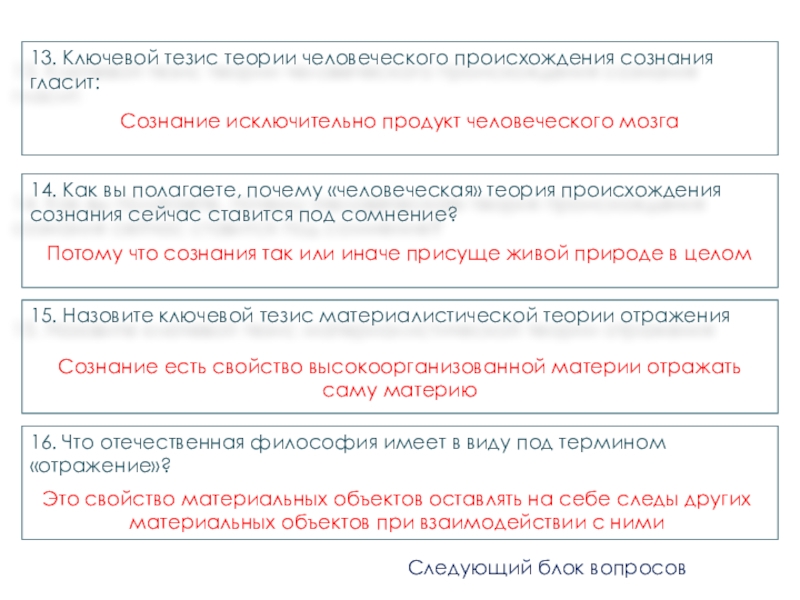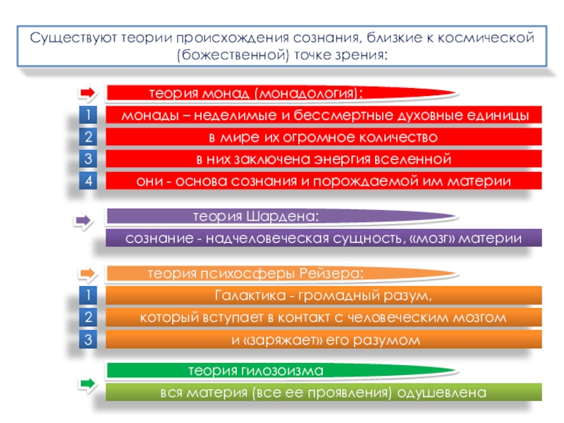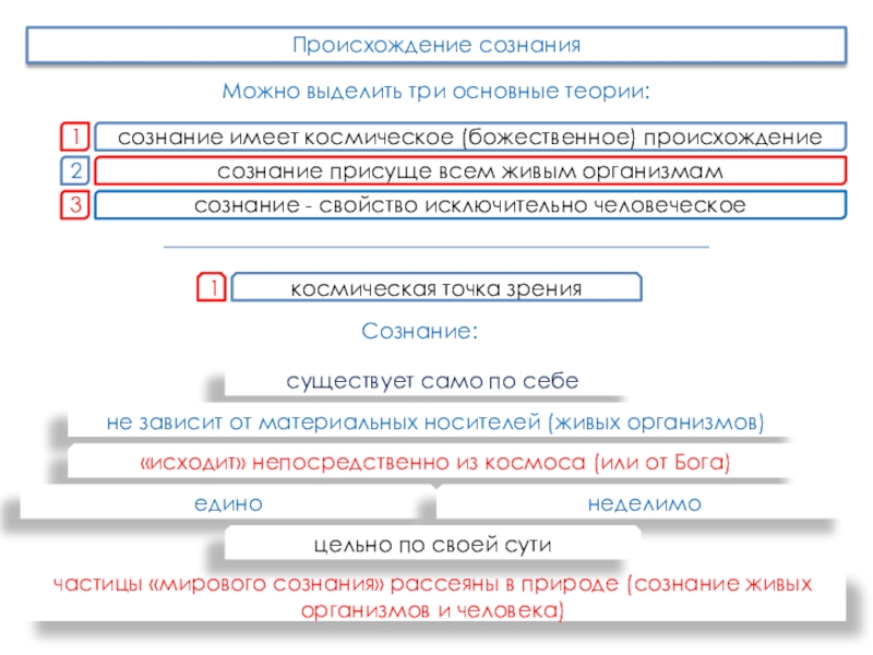 10. Частицы мирового сознания рассеяны в сознании человека и живых организмов. Так полагают сторонники … происхождения сознания