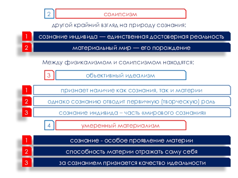 Умеренный материализм, солипсизм, объективный идеализм, физикализм