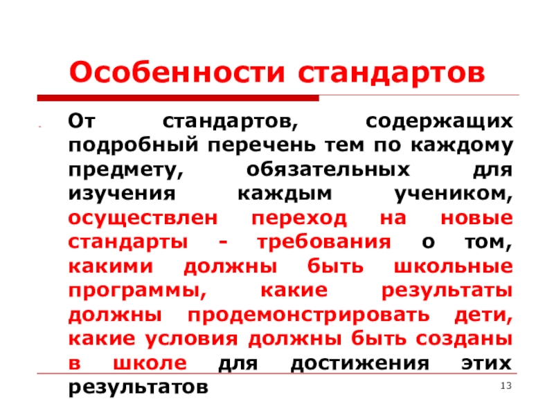 От стандартов, содержащих подробный перечень тем по каждому предмету, обязательных