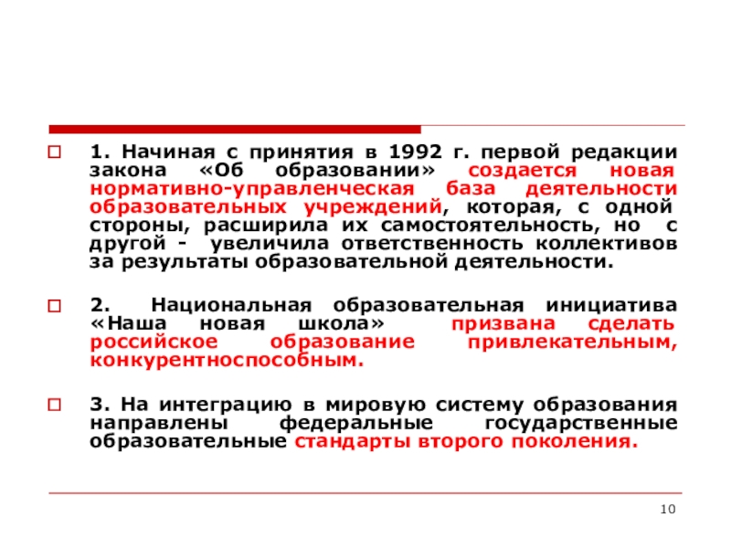 2. Национальная образовательная инициатива «Наша новая школа» призвана сделать российское образование привлекательным, конкурентноспособным.