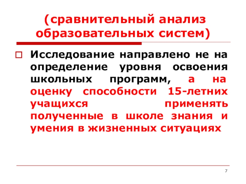 освоения школьных программ, а на оценку способности 15-летних учащихся применять полученные в школе знания и умения в жизненных ситуациях