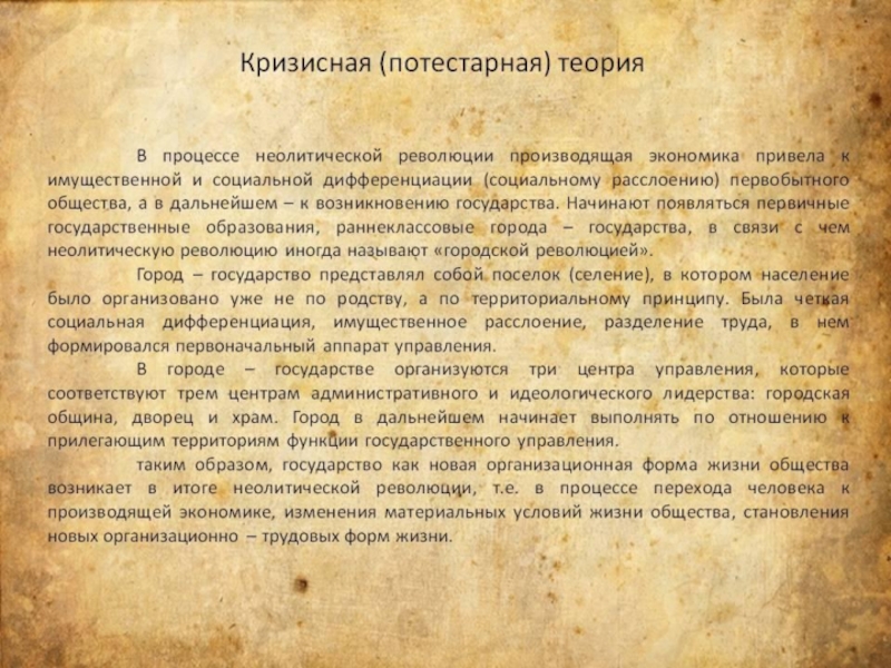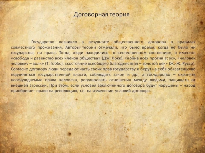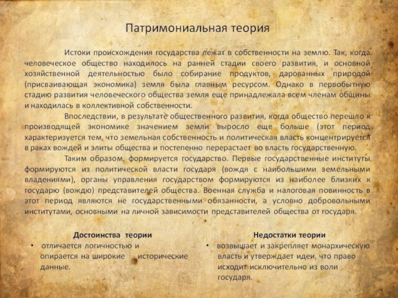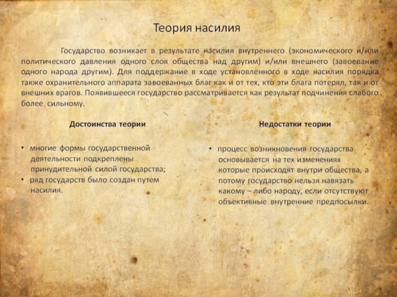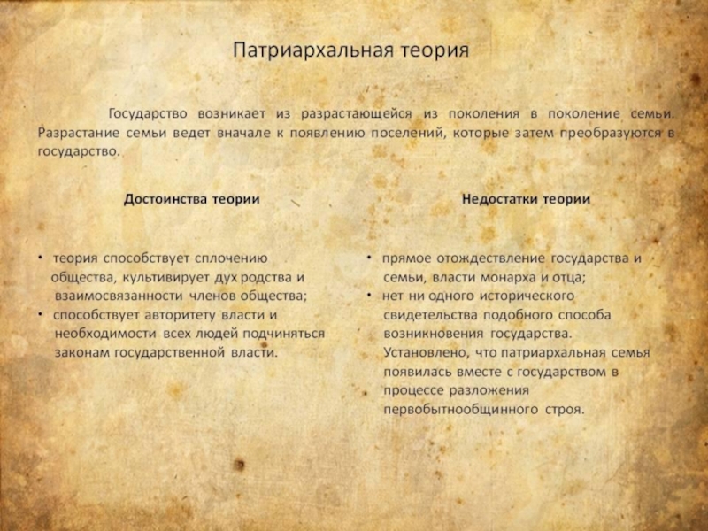 Презентация, доклад по обществознанию на тему Теории происхождения государства
