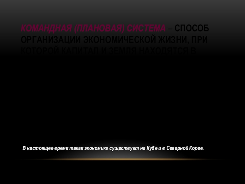 В настоящее время такая экономика существует на Кубе и в Северной Корее.