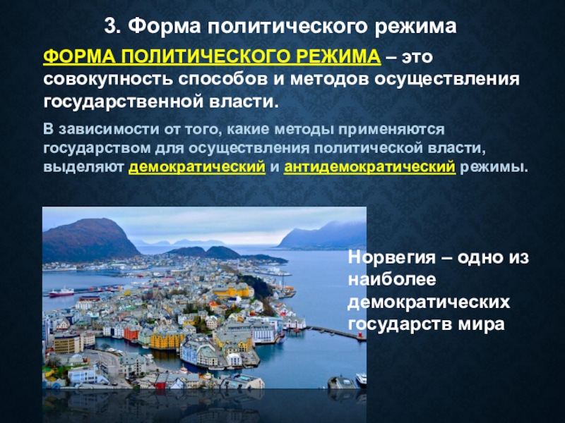 ФОРМА ПОЛИТИЧЕСКОГО РЕЖИМА – это совокупность способов и методов осуществления государственной власти.