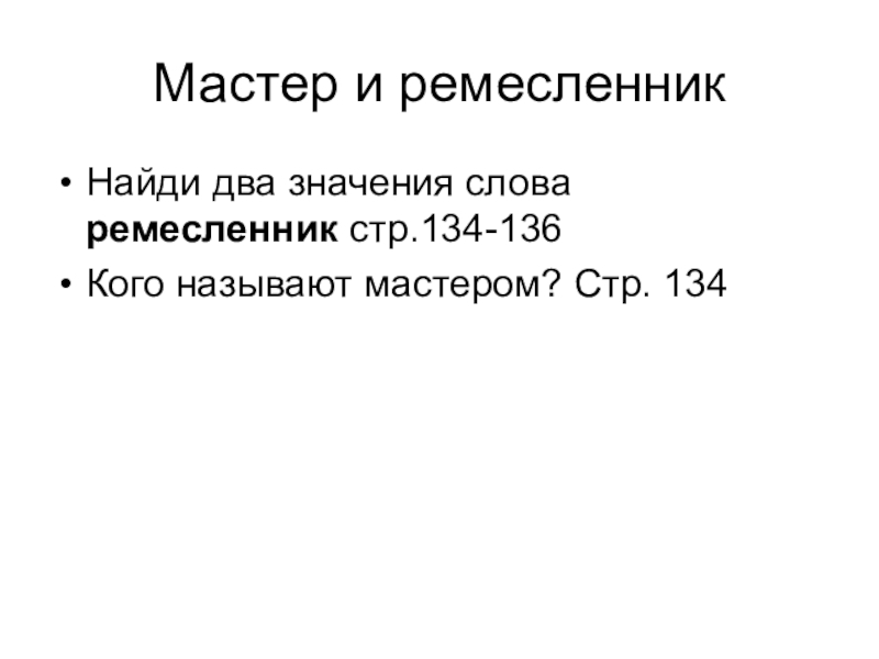 Мастер и ремесленникНайди два значения слова ремесленник стр.134-136Кого называют мастером? Стр. 134